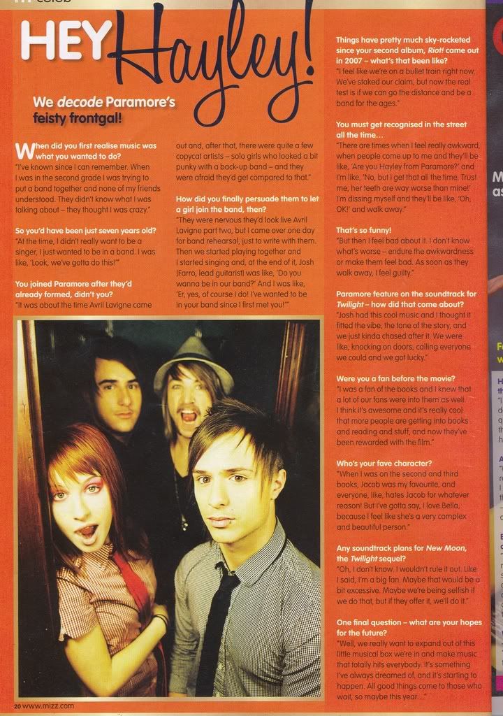 Hayley saiu na revista Mizz, com uma entrevista.